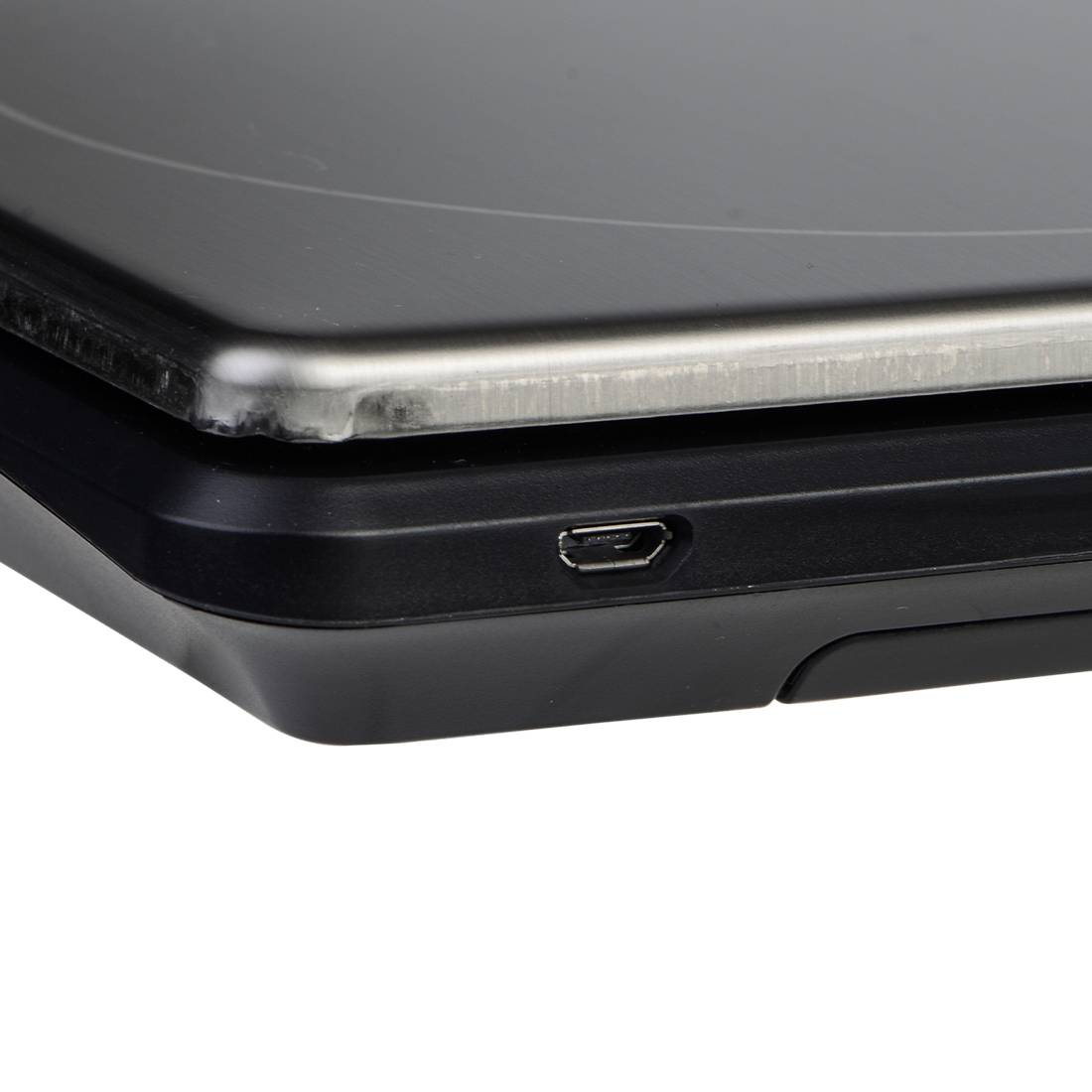 Cette balance fonctionne avec deux piles AA (fournies) mais bonne nouvelle, si vous préférez peser dans un endroit fixe, elle dispose également d'un câble USB pour la relier facilement à un adaptateur secteur (non fourni).