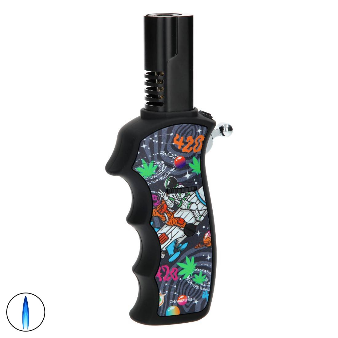 Le briquet chalumeau (aussi appelé briquet jet flamme ou briquet torche) contient un mélange de gaz et d'oxygène et ne possède aucun filament contrairement au briquet tempête turbo. La flamme produite est plus concentrée et plus chaude que celle des briquets conventionnels et peut atteindre facilement les 1300 degrés. Les flammes sont généralement rouges ou bleues. Le briquet jet flamme est particulièrement adapté pour l'allumage des matières denses tel que le cigare, le blunt , les charbons à chichas. Il fera aussi très bien l'affaire en parallèle avec l'utilisation de bang ou de douilles à concentrés et certains pourraient même trouver une place de choix dans votre cuisine pour caraméliser votre crème brulée ! Avantage et non des moindre : il est rechargeable. Vous pouvez recharger un briquet chalumeau avec une recharge de gaz butane classique, ou du gaz butane sans impuretés. Les recharges de gaz Clipper, Zippo, Colibri, Belflam... correspondent parfaitement à cet usage.