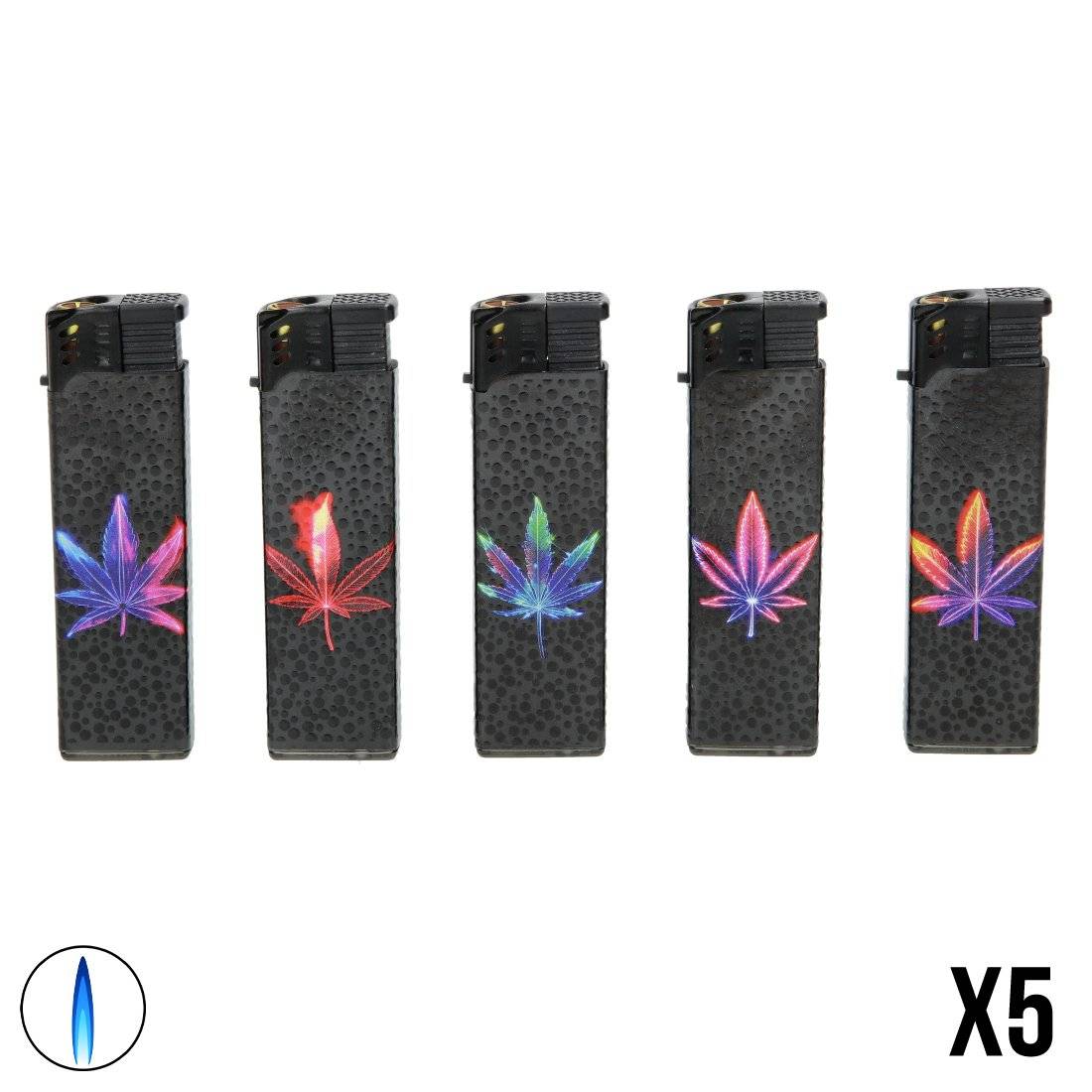 Ce lot de 5 briquets Tobaliq met en avant un design original autour du thème Luminous Buds, avec des feuilles de chanvre stylisées et colorées.
