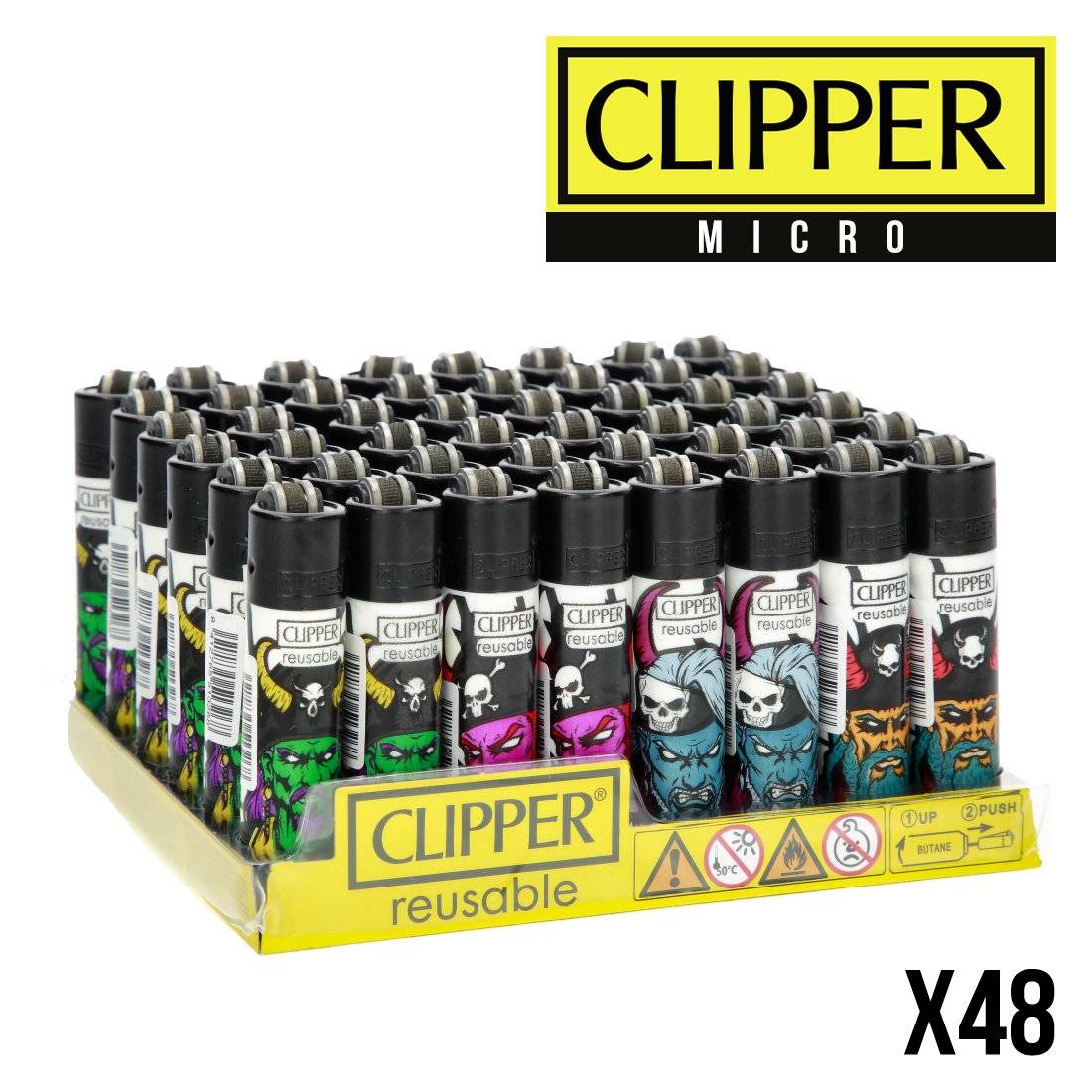 Le Micro Clipper Evil Pirate X48 met en avant une série graphique inspirée de l’univers des pirates avec des visages de corsaires illustrés dans un style marqué.