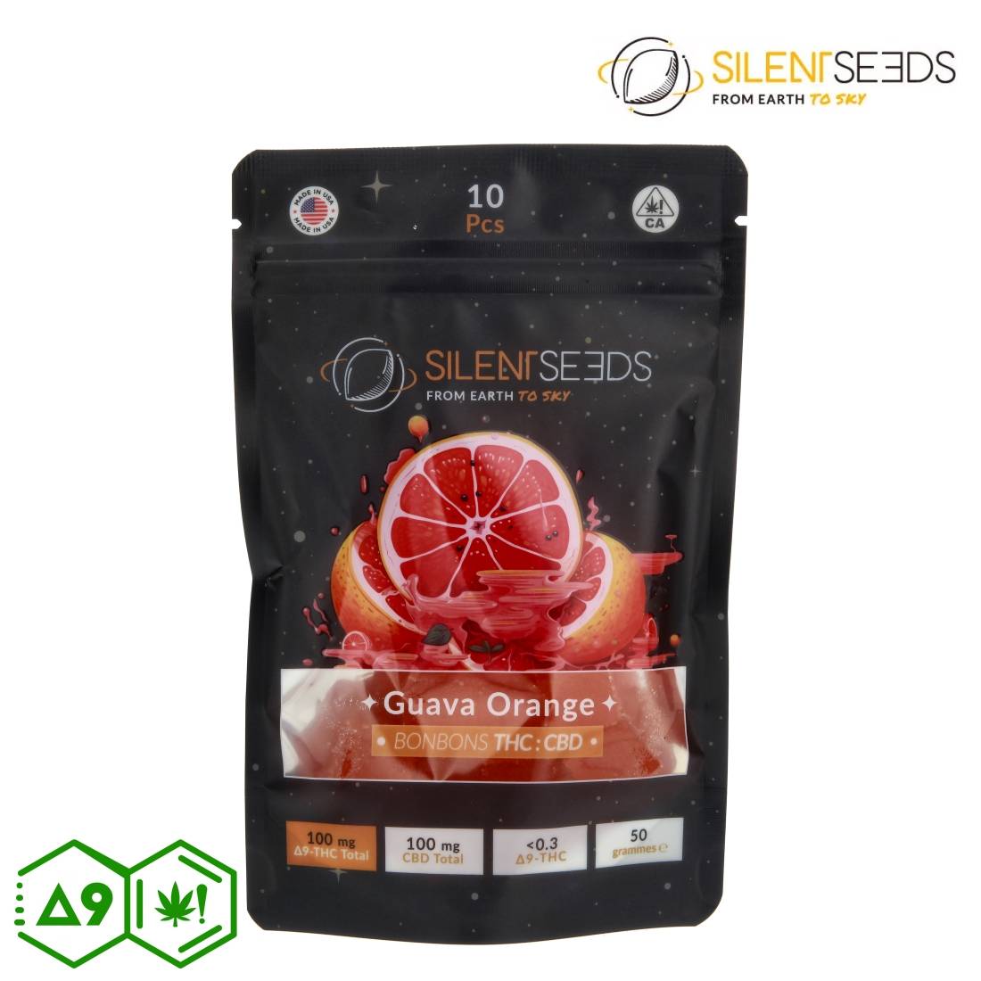 GUMMIES SILENT SEEDS GUAVA ORANGE DELTA9 100MG - CBD 100MG