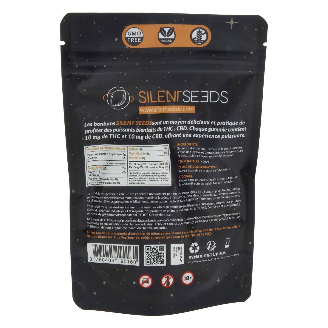 Les gummies Silent Seeds Guava Orange se distinguent par leur parfum unique associant le fruité de la goyave et la fraîcheur acidulée de l’orange.