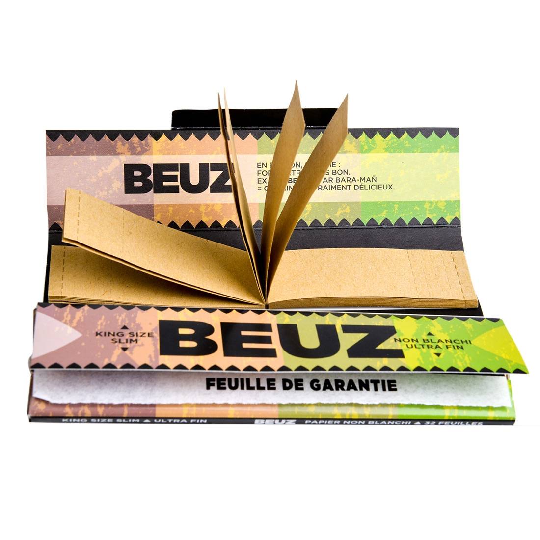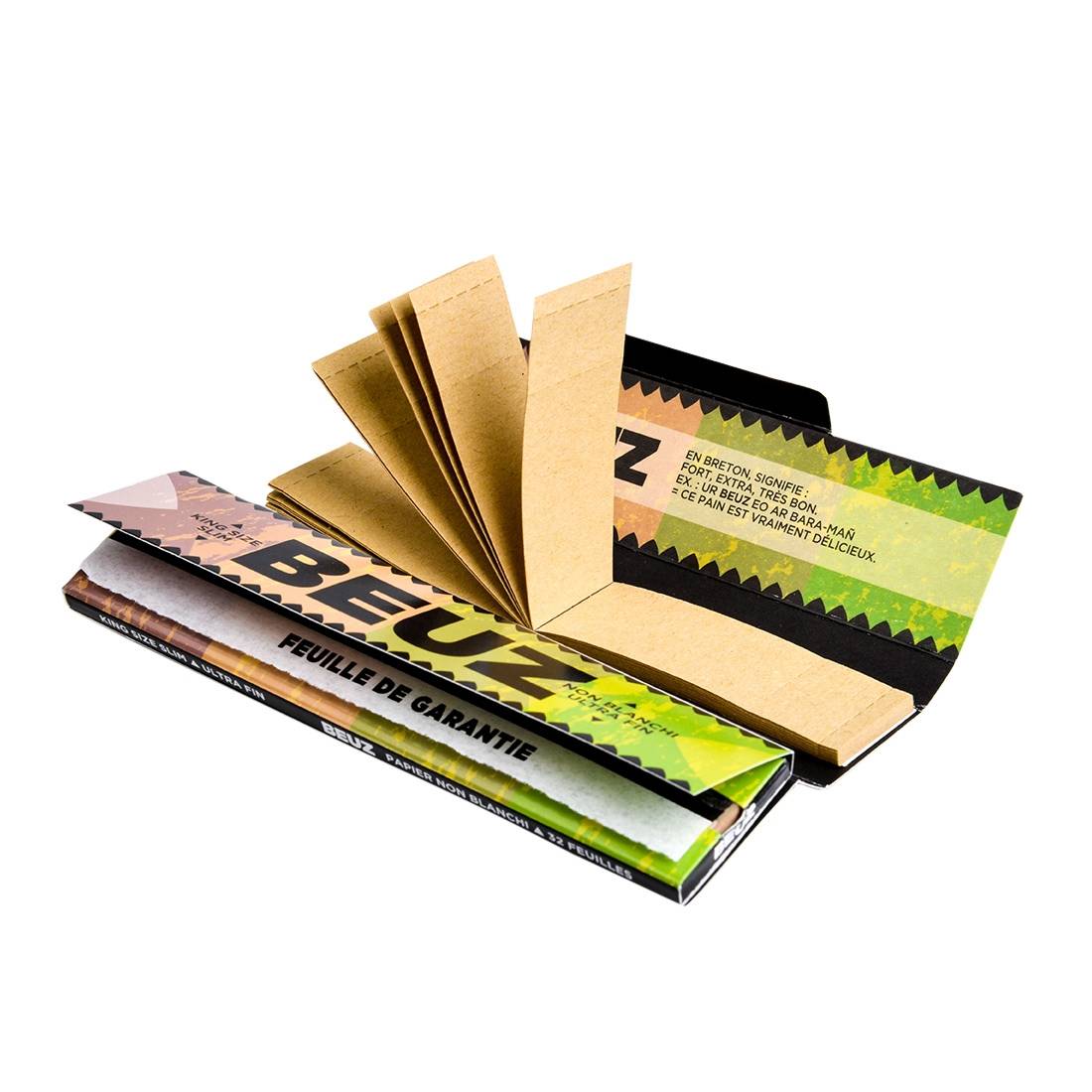 Ces feuilles "fortes", "extra", très bonnes", selon l'expression "beuz" consacrée, sont non blanchies, elles sont en effet produites sans faire appel à des produits chimiques, ce qui vous garantit un roulage sans fioritures, pour une expérience la plus naturelle possible. Si vous ajoutez à cela leur grammage de 12.5g/m², qui en fait des feuilles ultra fines, vous obtenez le plus "Beuz" des papiers à rouler ! Les cartons sont également non blanchis et perforés, ce qui vous permettra de leur donner la forme parfaite pour un roulage des plus réussis !