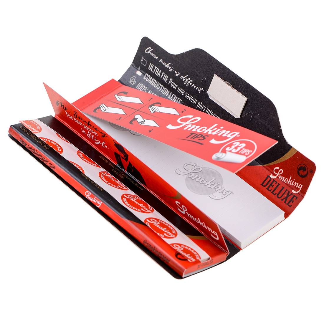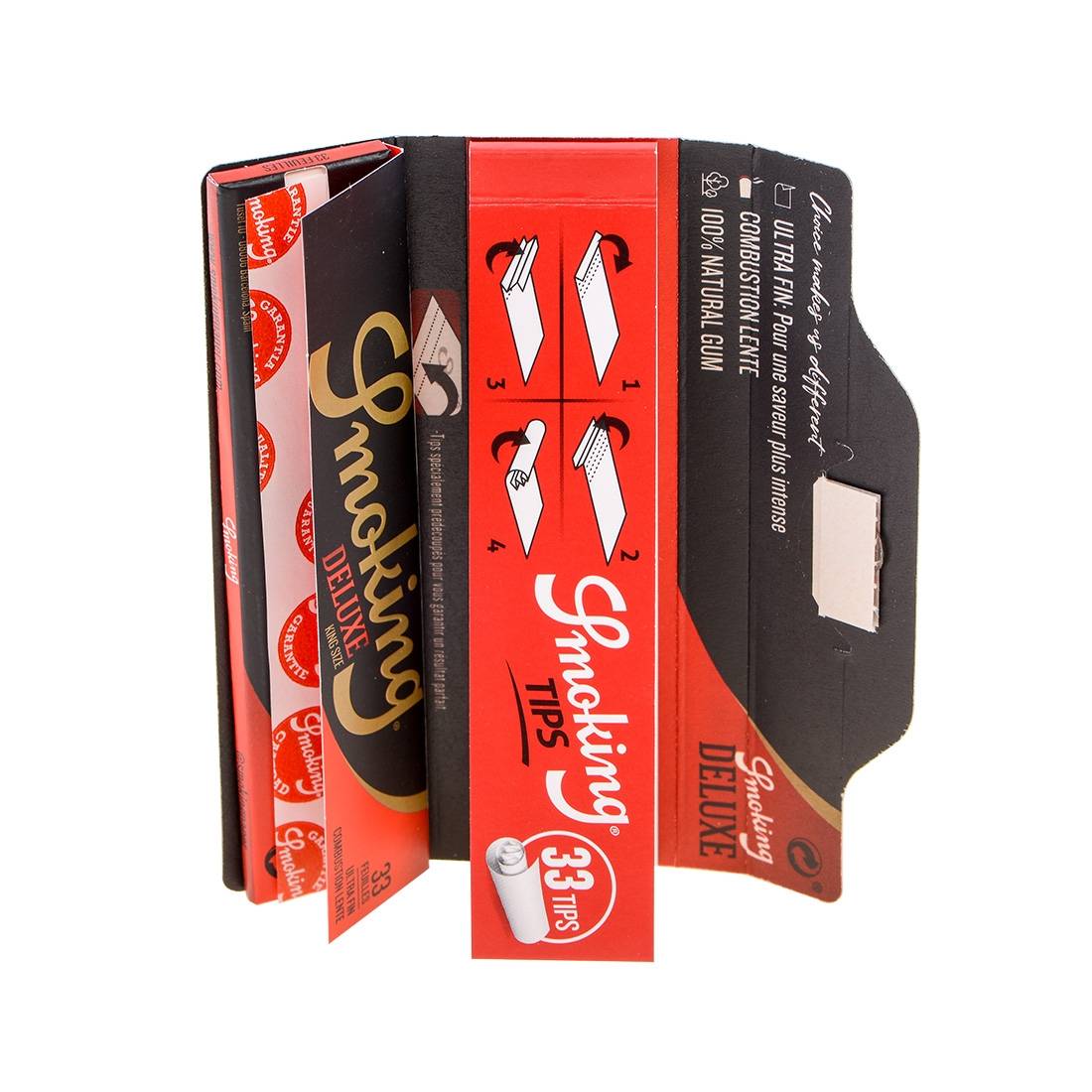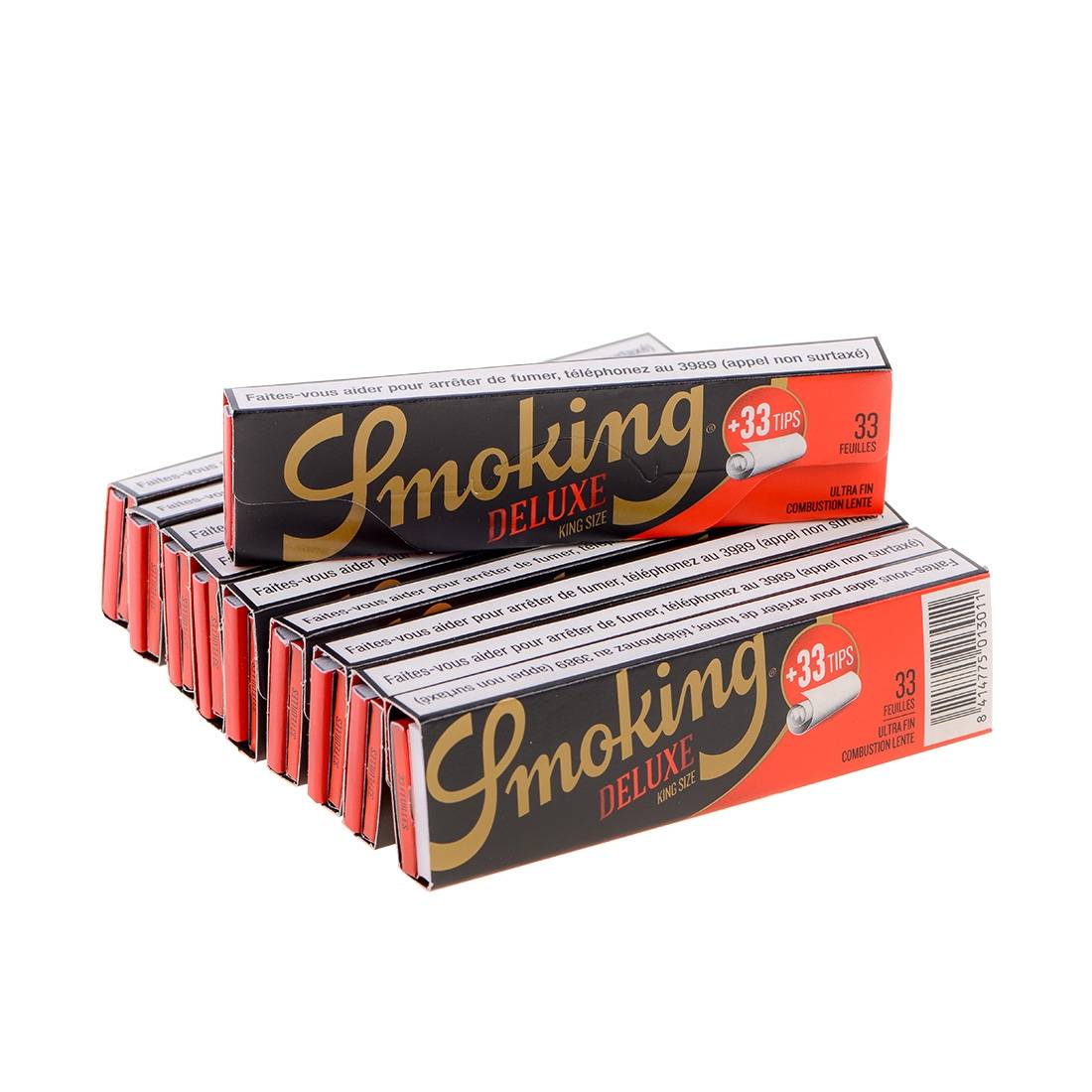 10 Carnets de 33 feuilles à rouler Smoking Deluxe Slim et 10 carnets de 33 filtres tips.
