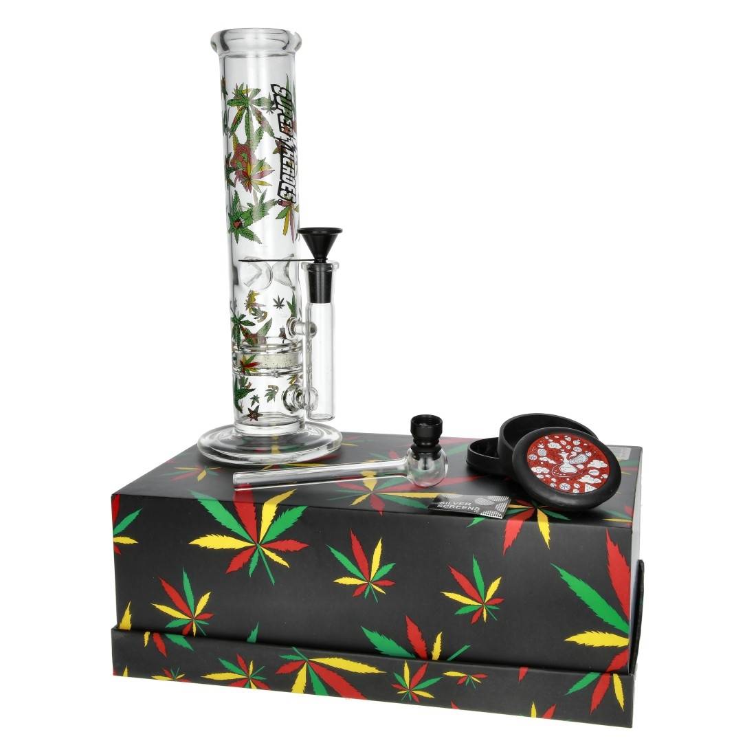 Une pipe en verre droite de 12 cm est également incluse, idéale pour une utilisation rapide et discrète.